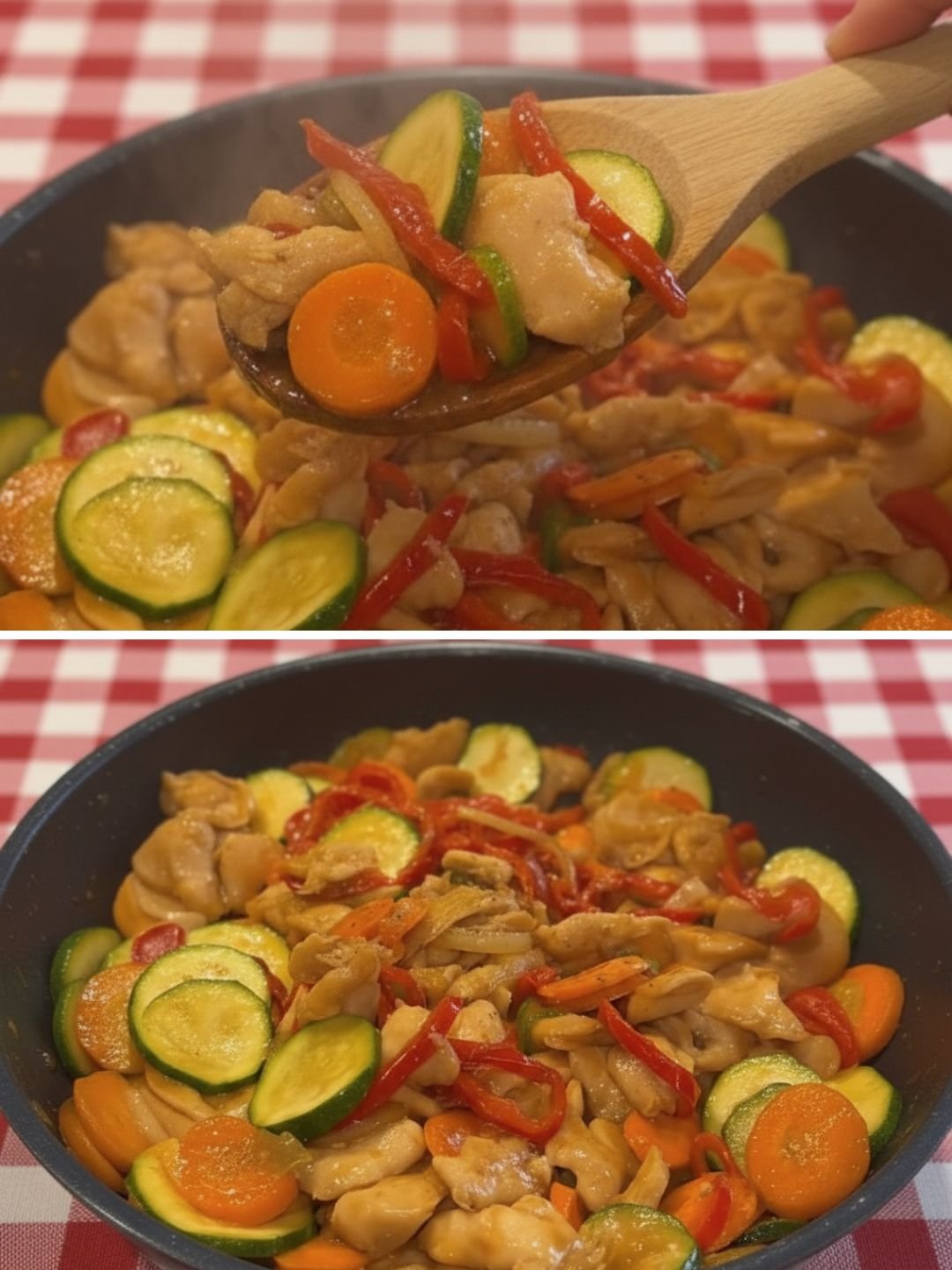 Receita completa de Frango de Panela com Legumes (abobrinha, cenoura e pimentão). Prato colorido, nutritivo e ideal para marmitas saudáveis. Aprenda agora!